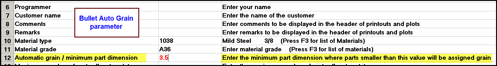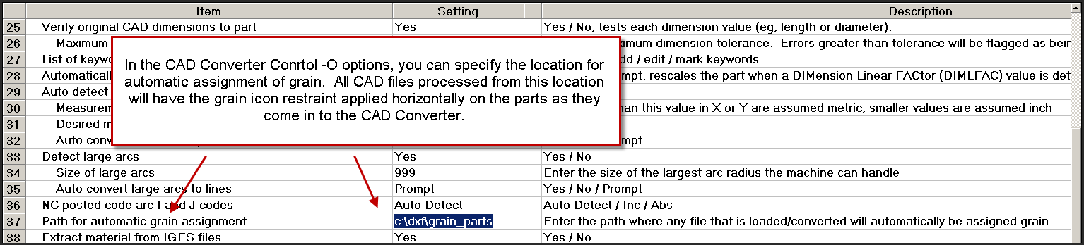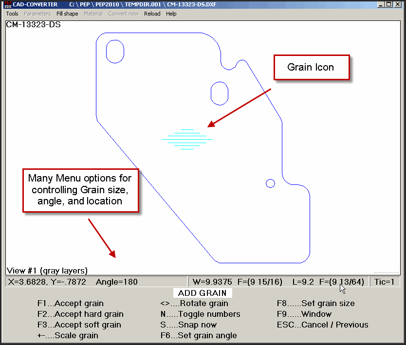 The user sets the grain type in the drawing database field shown on the screen to the right.