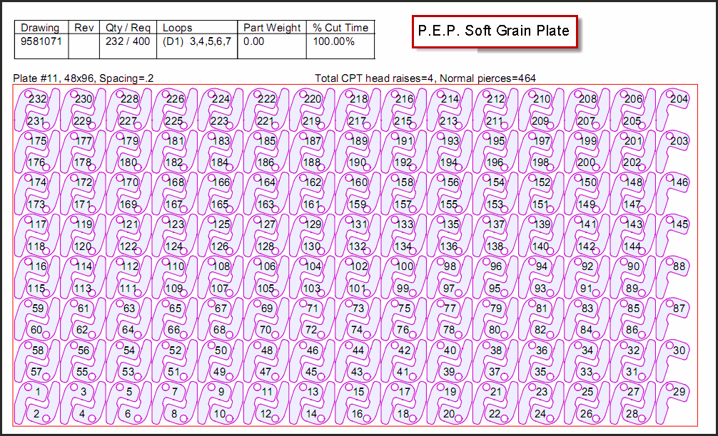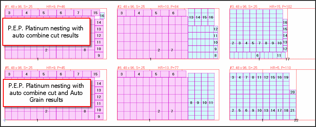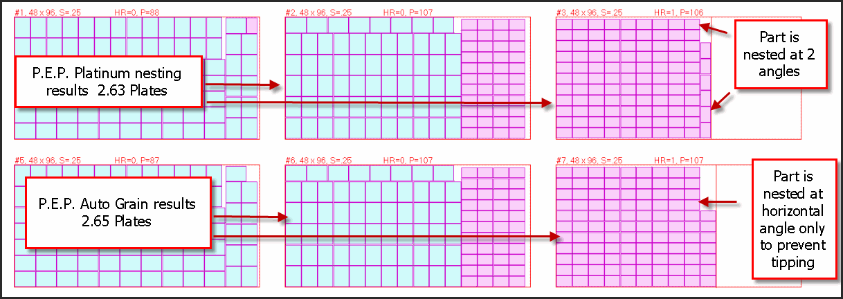 There are 3 types of Grain supported by the PEP software: Standard, Hard and Soft. Parts that have grain will be nested as follows: