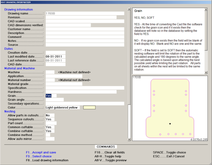 - Hard Grain – limits the nesting of the master drawing to the orientation saved in the drawing database, 0 degrees.